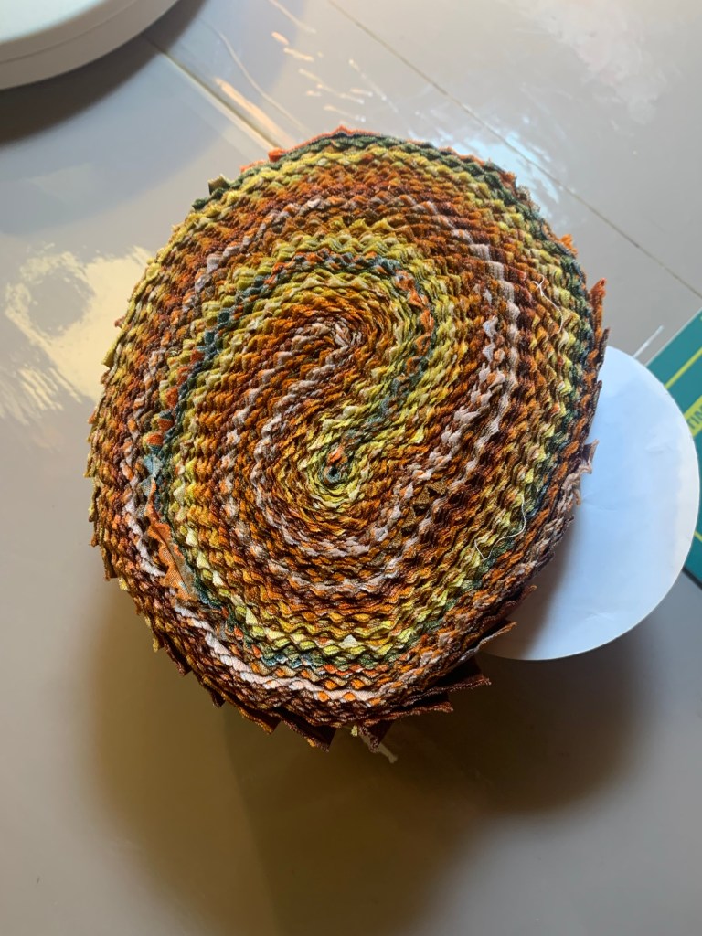 J’ai commencé un projet avec des « hexagones » à partir d’un jelly rolls dans les tons automnales.