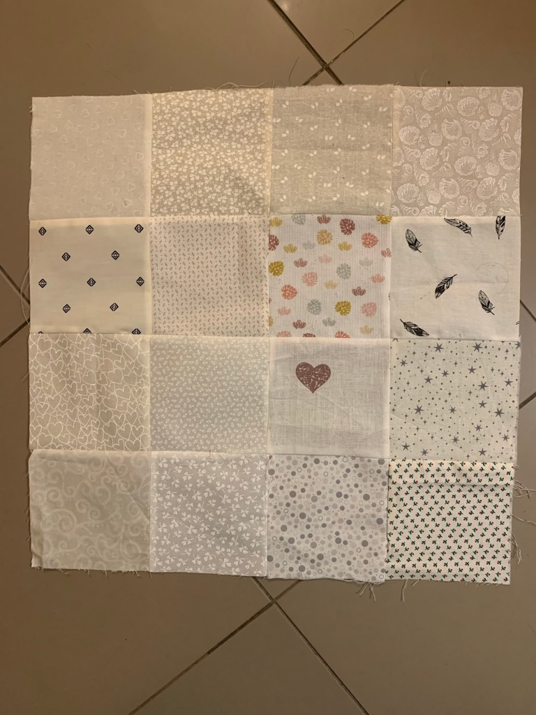 Finalement j’ai décidé de garder min bloc avec les carrés de 10 centimètres. Cela fera un grand plaid.