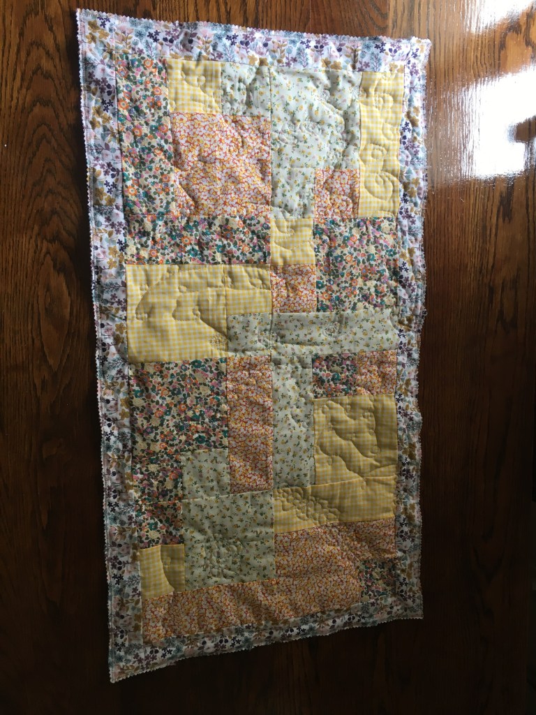 Je me suis entraînée à matelasser à la machine mon chemin de table.