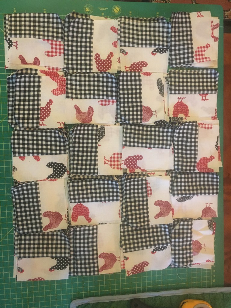 J’ai préparé deux lots de sets de table en utilisant des tissus avec des poules 🐓 .