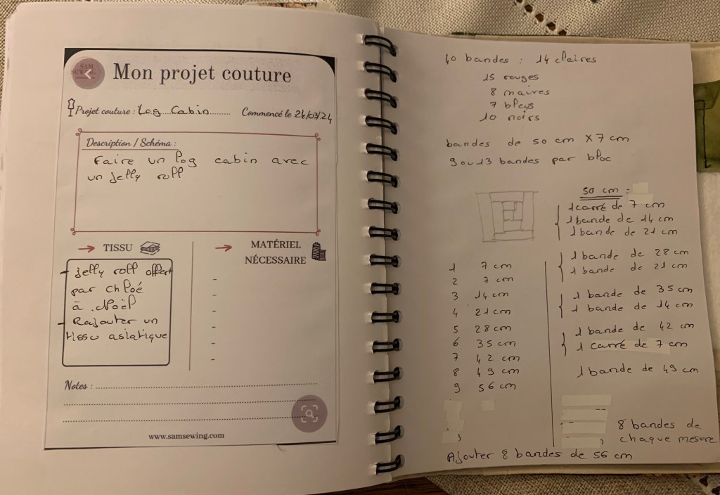 J’ai commencé à calculer les mesures et les coupes que je dois faire pour réaliser un log cabin avec le Jelly Roll que m’a offert l’une de mes nièce à notre Noël 🎄 canadien.