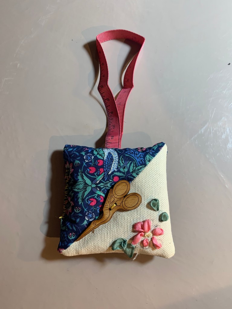 J’ai réalisé une broderie aux rubans 🎀 que j’ai remplis de lavande ainsi mon coin couture 🪡 est parfumé.