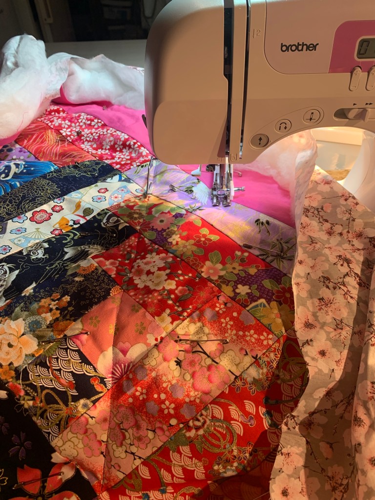 Concernant les autres patchworks que je vous ai montré, je n’ai plus assez de molleton. J’en ai commandé et attends la livraison d’un rouleau de 6 mètres de long en 2 mètres de large.