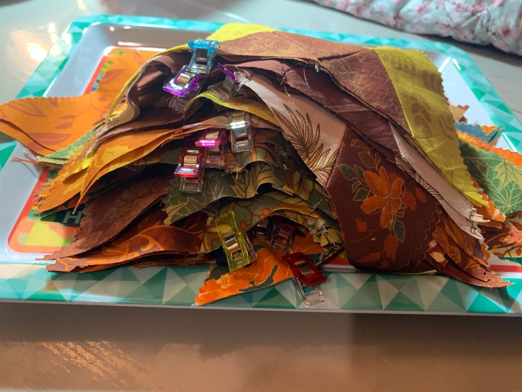 Depuis ma dernière publication, j’ai fini d’assembler mes blocs pour mon patchwork « Hexagones ».