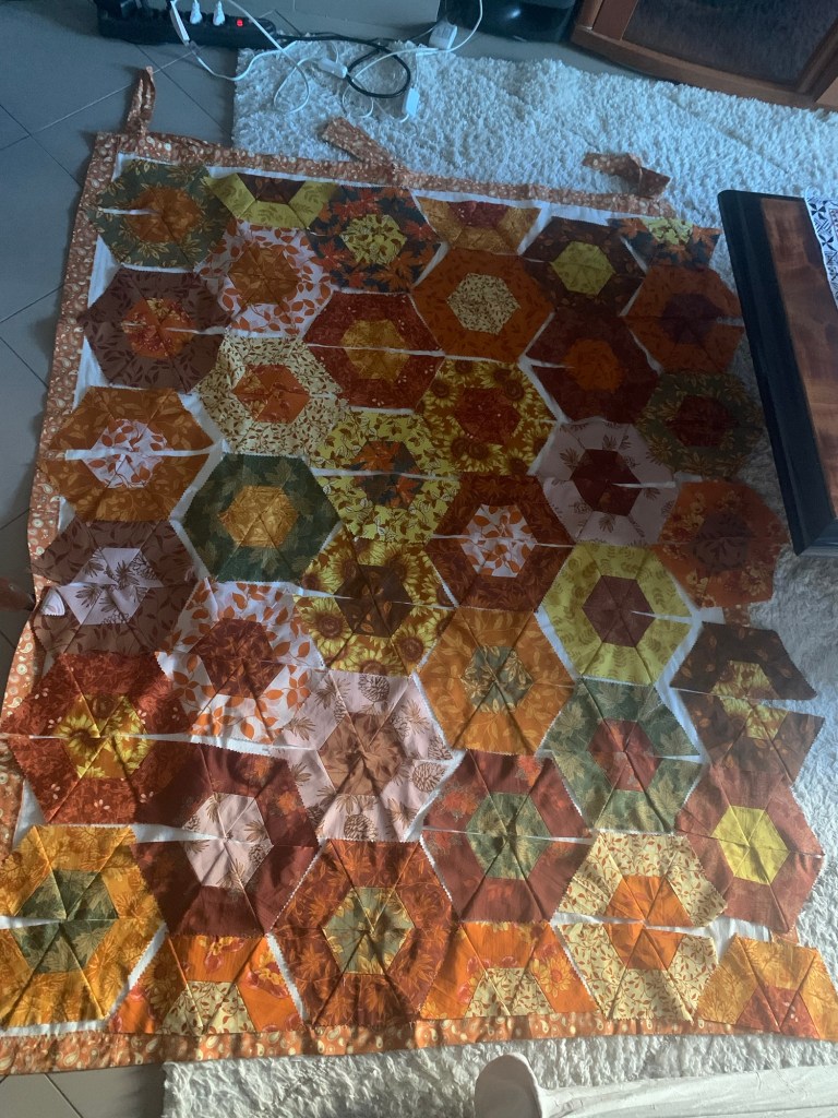 J’ai assemblé les 2 morceaux restants que j’appliquerai au dos de mon patchwork.