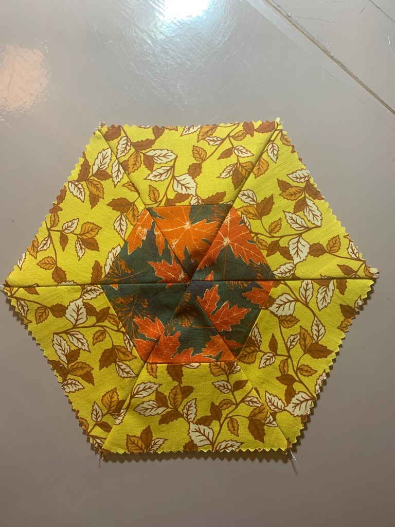 J’ai disposé mes « hexagones » sur mon mur de design (que j’ai déposé au sol en raison du poids des blocs) et suis prête à assembler mes bandes.