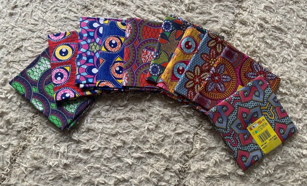 Ma belle-sœur m’a offert un lot de wax très coloré évidemment.