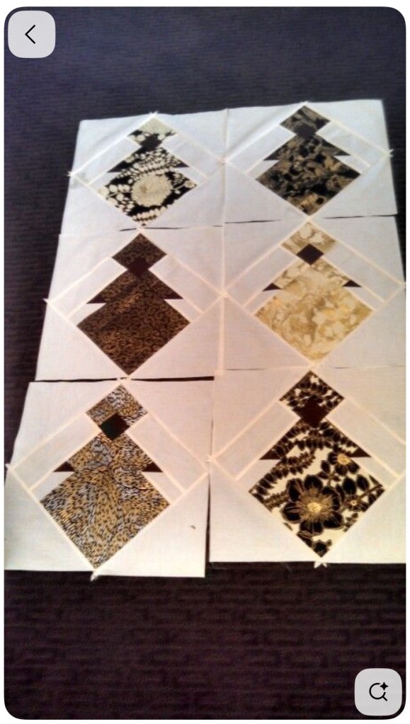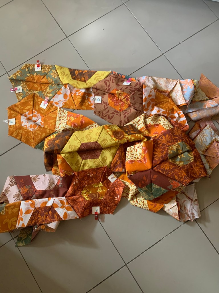 J’ai assemblé toutes les lignes de mon patchwork « Hexagones », puis quand je les ai épinglées pour les assembler je me suis rendue compte qu’il y avait plusieurs blocs qui ne correspondaient pas.