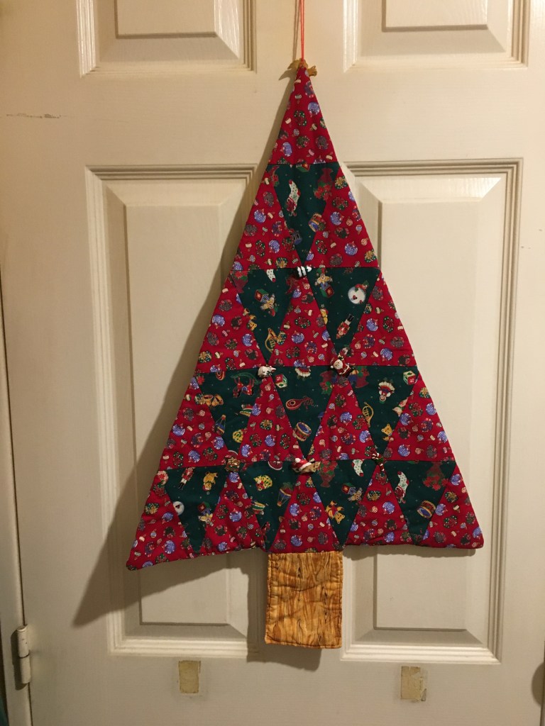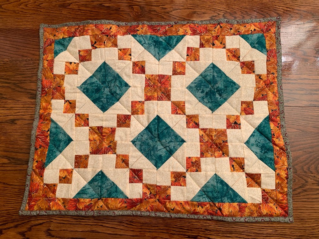 Pour réaliser cette nappe, je me suis inspirée de la vidéo du 1er janvier 2022 de Crafty Quilting Design intitulée « Disappearing harglass quilt new start, new skills, layer cake quilt » pour coudre une nappe.
