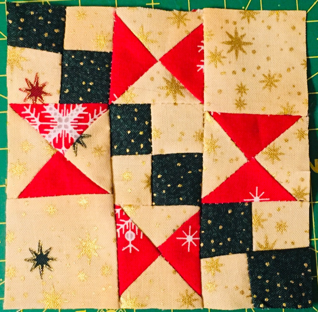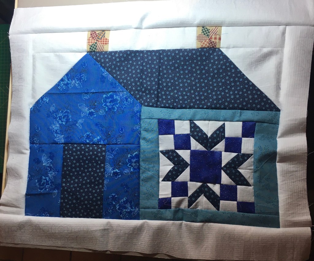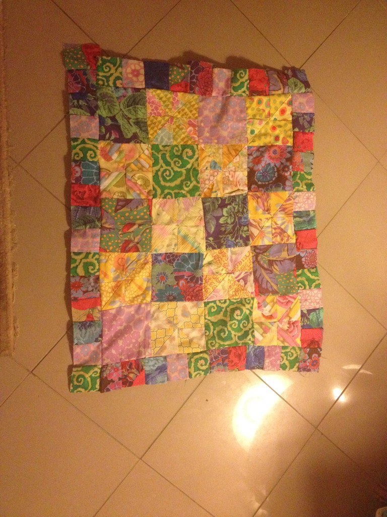 J’ai assemblé les blocs restants ; le panneau sera intégré au tissu du dos de mon patch pour rappeler le devant.