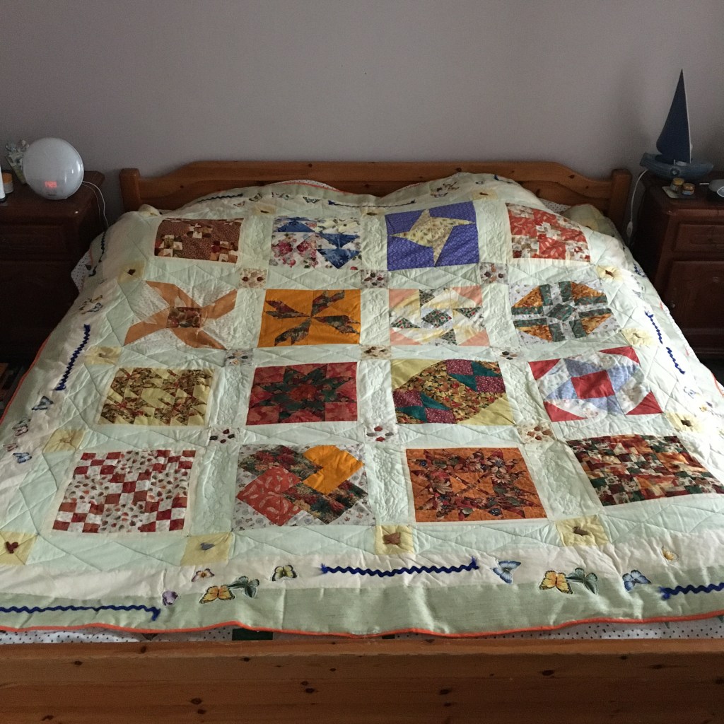 J’aime beaucoup le résultat des broderies sur les patchworks. Je trouve que cela donne un effet de matelassage élégant .