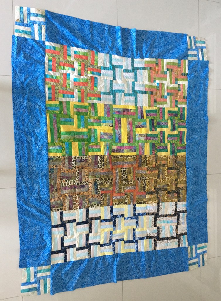 J’ai réalisé ce patchwork avec 2 jelly rolls en batiks.