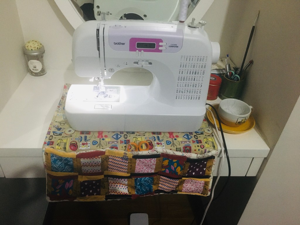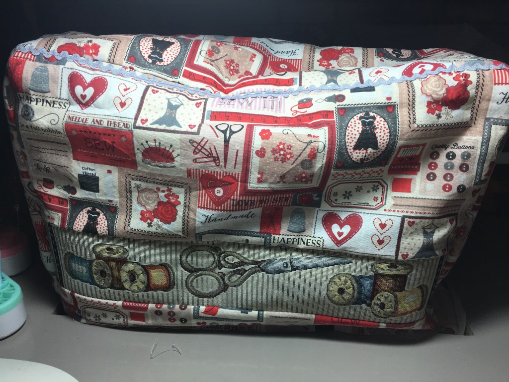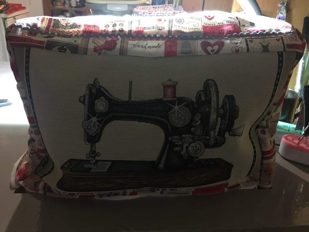 Pour réaliser cette housse pour ma machine à coudre, j’ai utilisé un panneau brodé 🧵. J’ai assemblé le tout avec la housse fournie avec ma machine et ajoute un croquet sur les côtés latéraux du dessus.